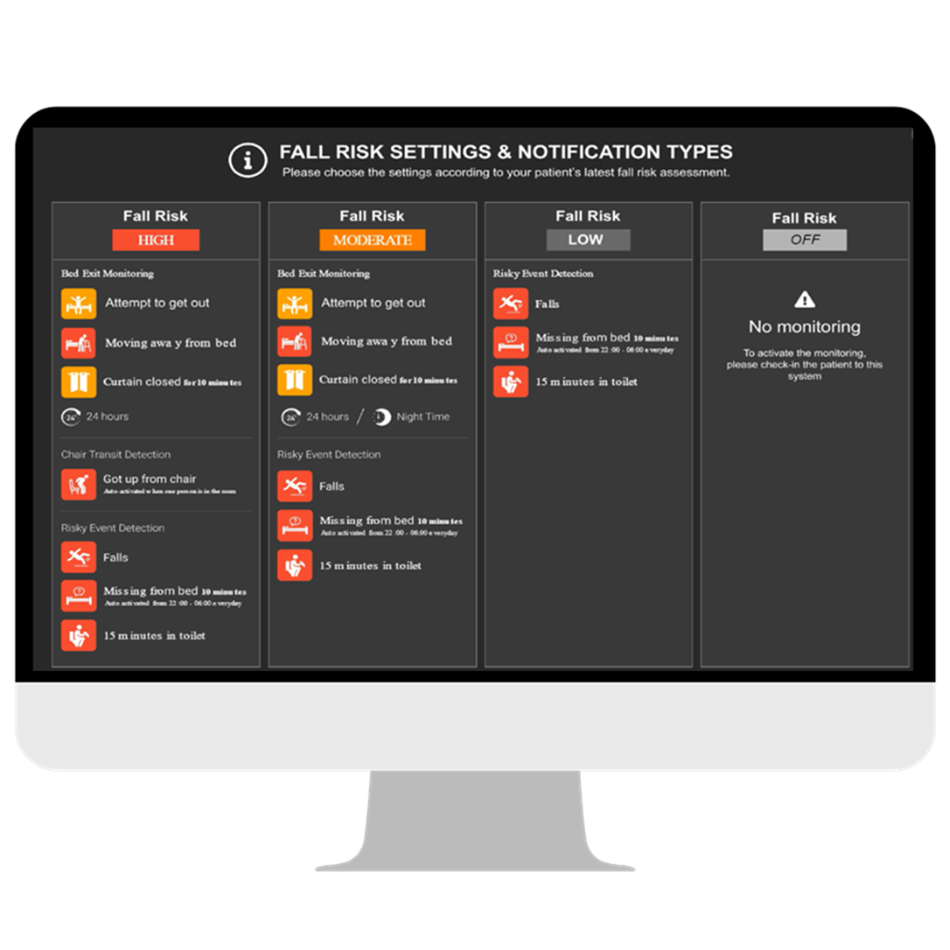 As part of the on-boarding process, an on screen fall risk assessment is completed for each patient which activates different levels of support and intervention from our algorithms creating an effective care package.